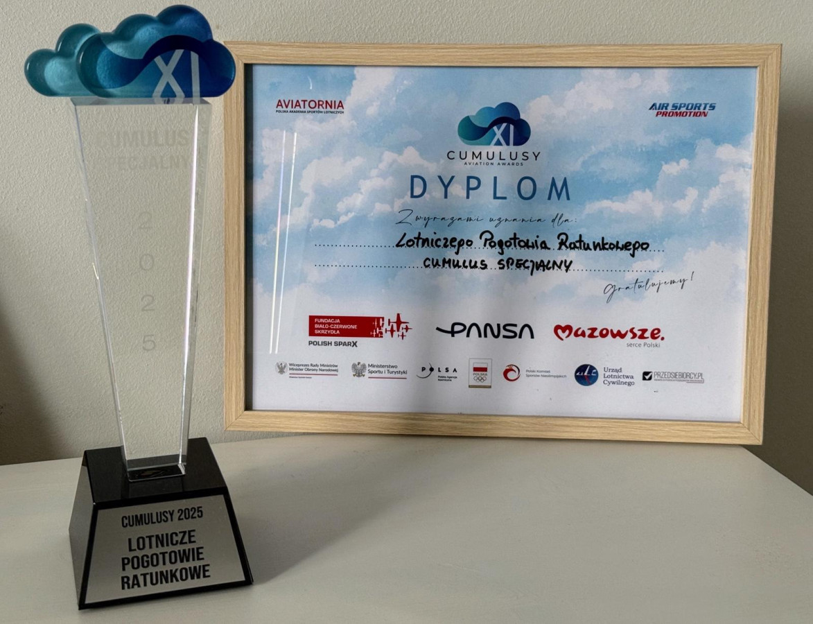 To już druga taka nagroda dla Lotniczego Pogotowia Ratunkowego. Błękitnego Cumulusa otrzymaliśmy w 2020 roku.