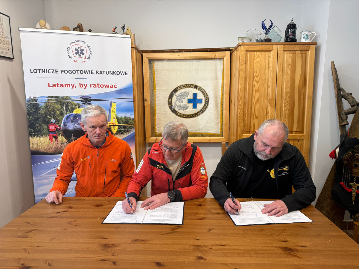 Bartłomiej Florczak, dyrektor ds. operacyjno-szkoleniowych, w imieniu dyrektora Lotniczego Pogotowia Ratunkowego podpisał dziś w Zakopanem porozumienie o współpracy z Tatrzańskim Ochotniczym Pogotowiem Ratunkowym. To otwarcie nowej drogi.